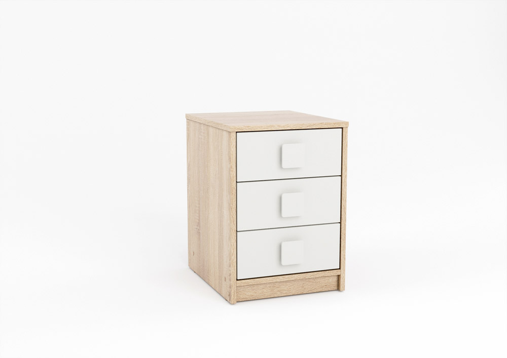 Небольшая, компактная тумба с тремя ящиками отлично дополнит мебельный комплект.